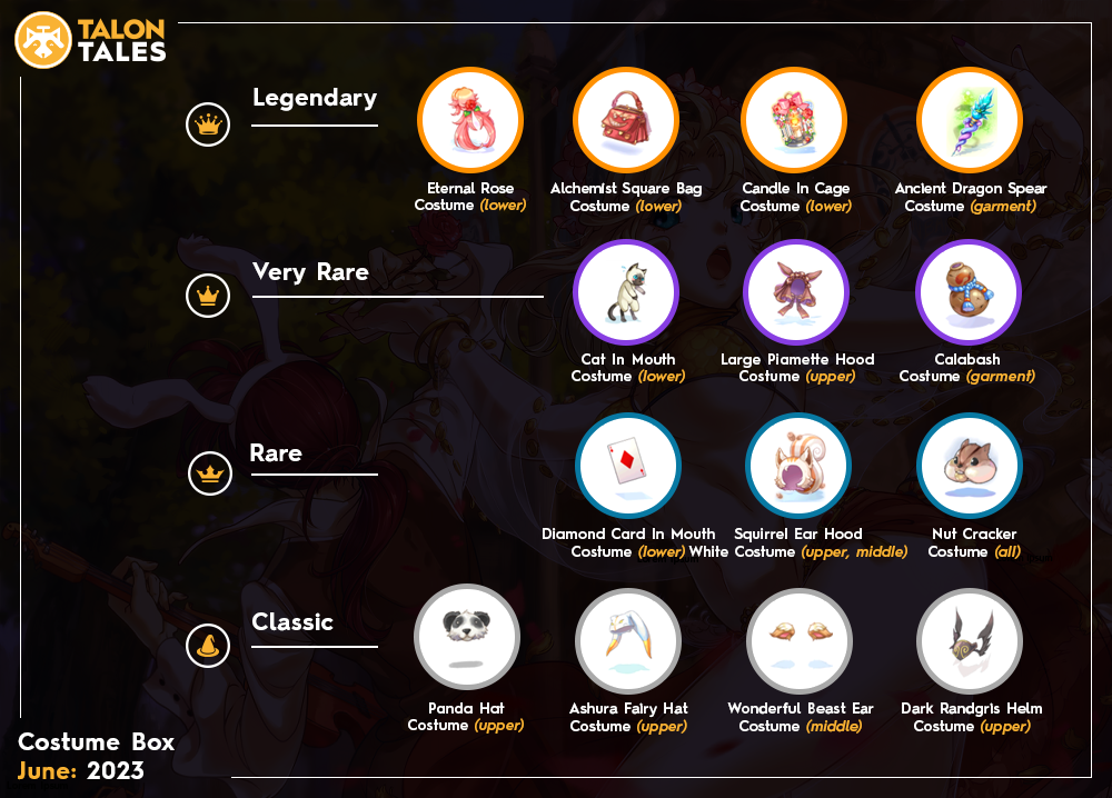 For a duration of one week, you can now purchase this [Visual] Sakura Petals Costume at the Talon Shop for 5000 Talon Cash and the [Visual] Teaparty Wonderland Costume for 5500 Talon Cash! They both go in your Garment slot.